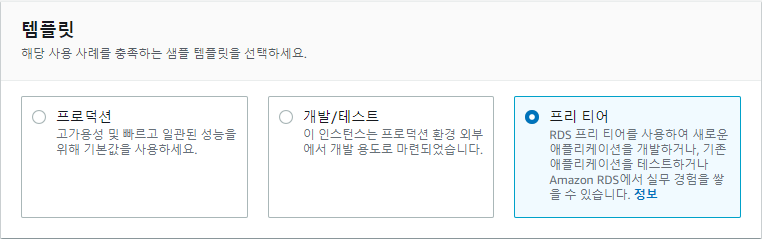 템플릿은 프리 티어로 설정