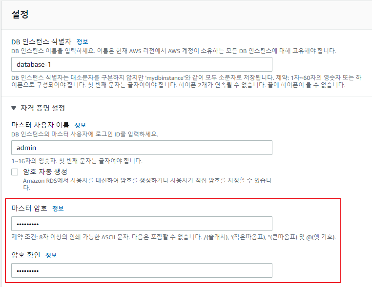다 했으면 맨 아래로 내려서 '데이터베이스 생성' 클릭