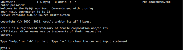 mysql -u <사용자이름> -p -h <RDS 엔드포인트>