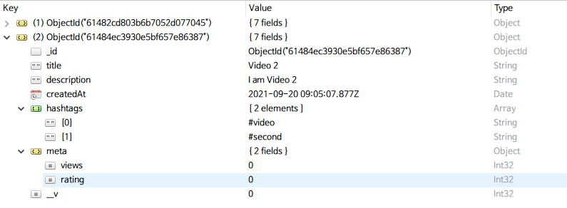 Robo 3T로 확인했을 때 입력한 값들이 정상적으로 DB에 저장되었다!