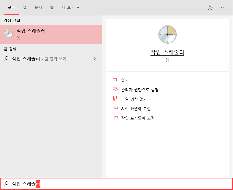 먼저, 윈도우 기본 검색에 '작업 스케줄러'를 검색한다.